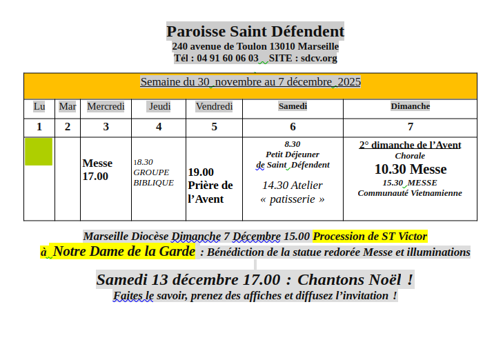 Le diocèse de Marseille sera dans la joie le dimanche 7 décembre 2025 pour fêter la Bonne mère autour de sa statue redorée. Le rendez-vous est fixé à 15h30 à l’abbaye de Saint-Victor pour une messe. Elle sera suivie d’une procession vers Notre-Dame de la Garde et d’un spectacle son et lumière. Plus d’informations sur le site de notre diocèse